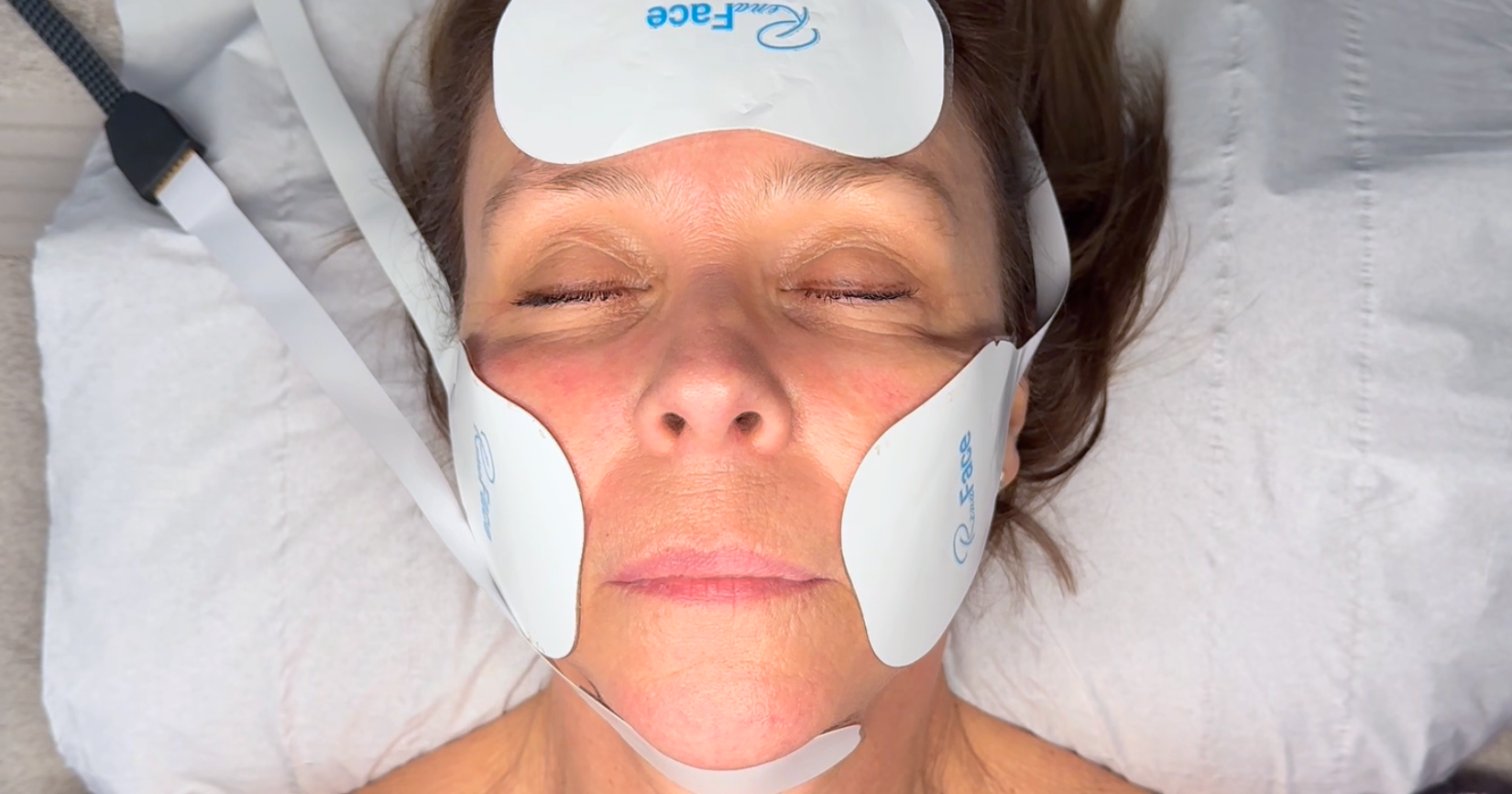 Electrical pads are placed on your face at the cheeks, forehead, under eyes and under the chin.